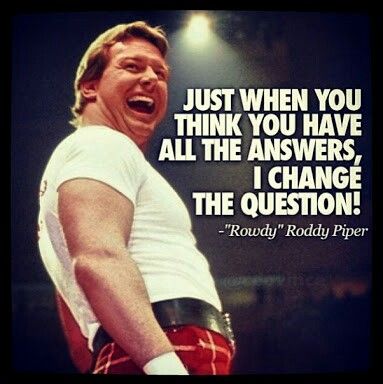 That is what made me think of the quote from a professional wrestler I watched in my youth. Just when you think you have all the answers, the question gets changed.
