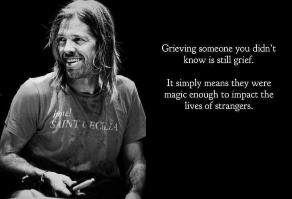 But now, Grohl is morning again. Hawkins has been the drummer for the Foo Fighters for over two decades, often side by side with Grohl. There is no way to even understand what grief Grohl must be feeling, as I got pissed off this morning by a Fox “story” on the “first sighting of Grohl” in California since Hawkin’s passing. Paparazzi are such ghouls.